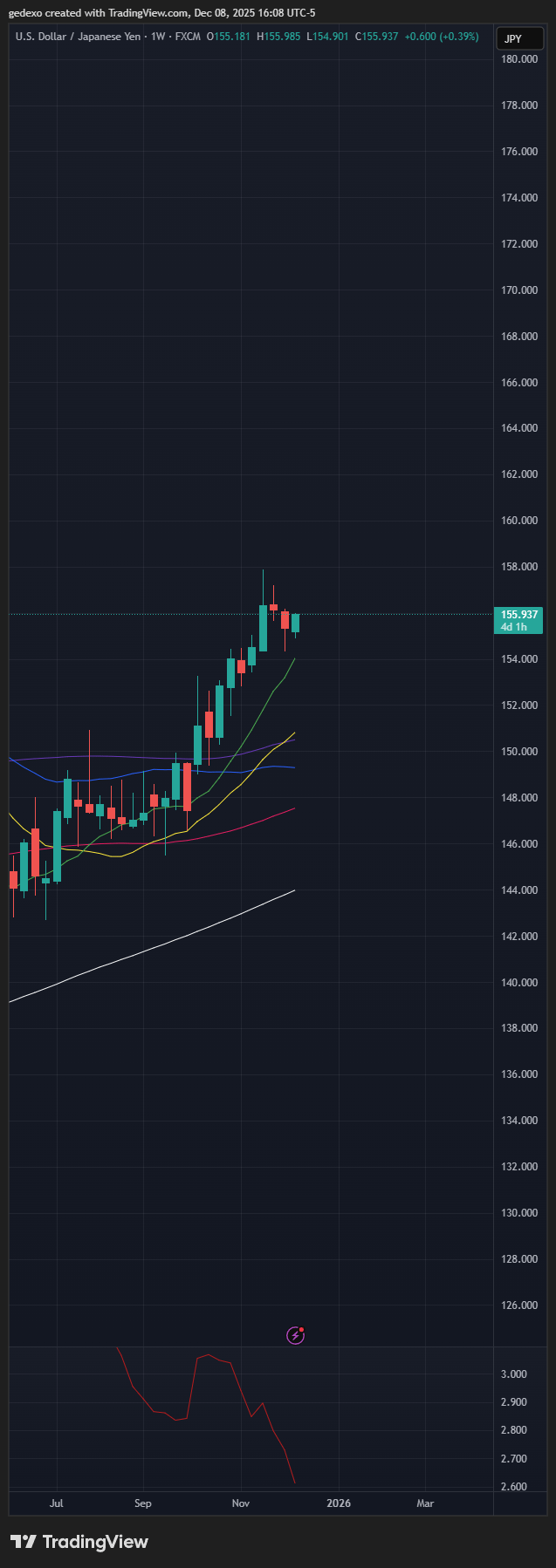 El precio actualmente se encuentra dentro de la zona de 155, un área que ha sido intervenida anteriormente y que, claramente, según los comentarios de Takaichi, ha sido motivo de preocupación, ya que no apoyan un yen débil.